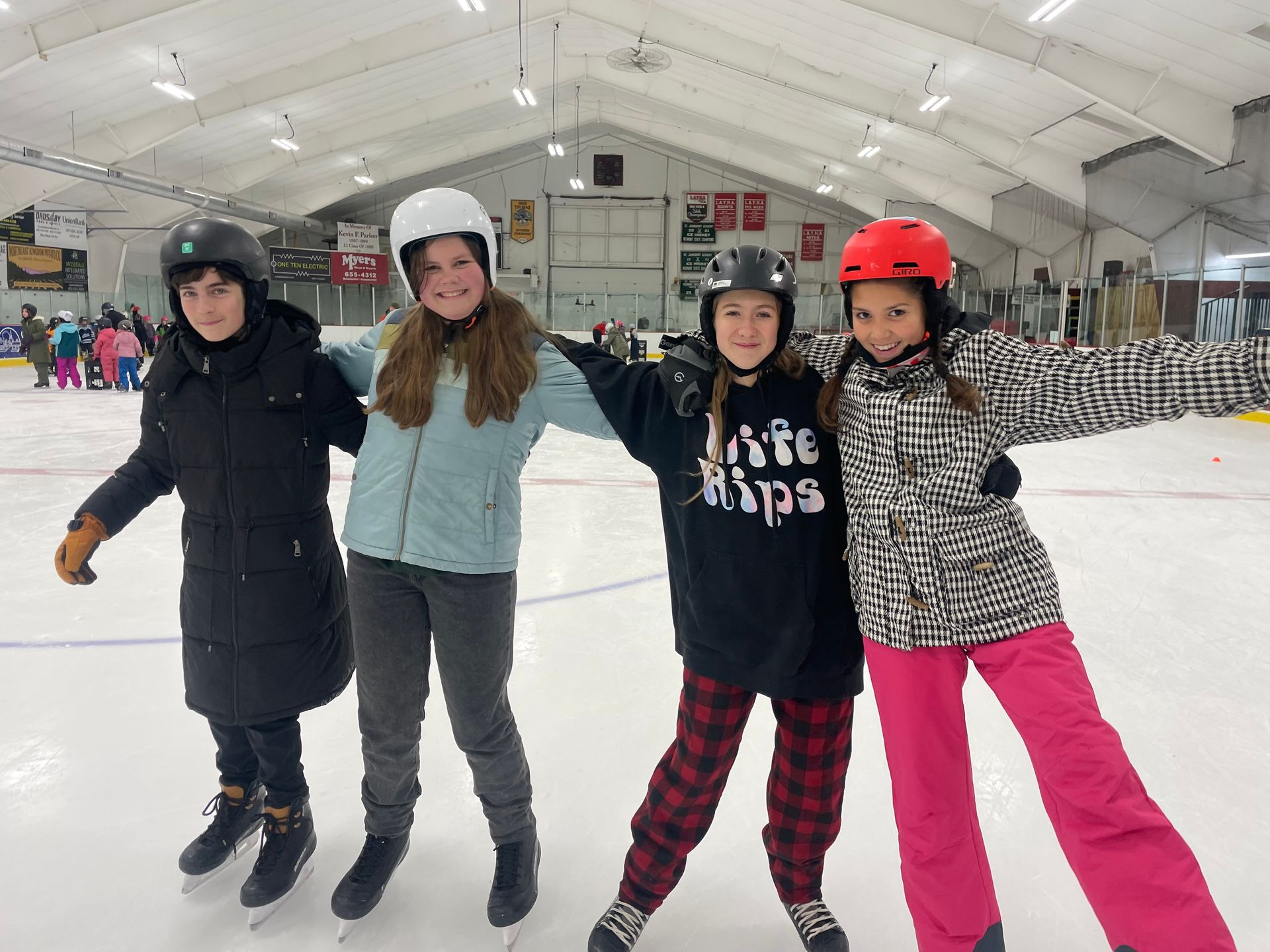 7th graders Ben and Audrey and 8th graders Fiona and Phoenix skated together during free time at the rink on Friday.