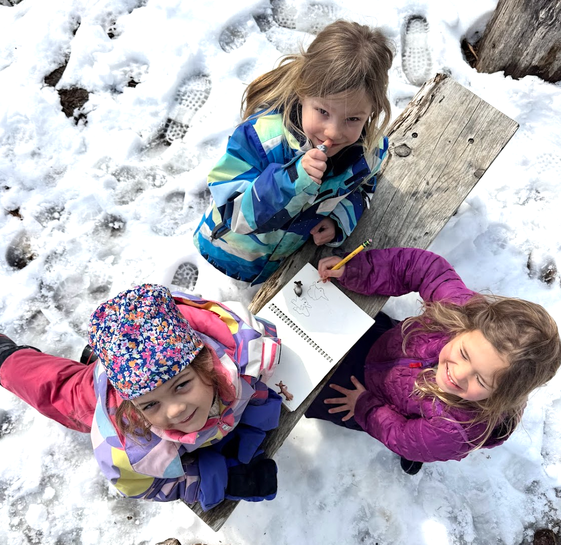 Kindergarteners Isla, Claire, and Saoirse observed and documented signs of spring recently.